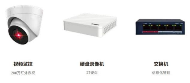 视频监控套装集成摄像头 、录像机 、存储硬盘及其他配套设备, 为用户提供了一套完整 的监控系统 。 除了基本的监控功能外, 视频监控套装还集成了许多高级功能, 如人脸识别、 行为分析等 。这些功能通过人工智能技术的应用, 使得监控系统不仅能够记录视频画面, 还 能对特定事件做出反应和预警。